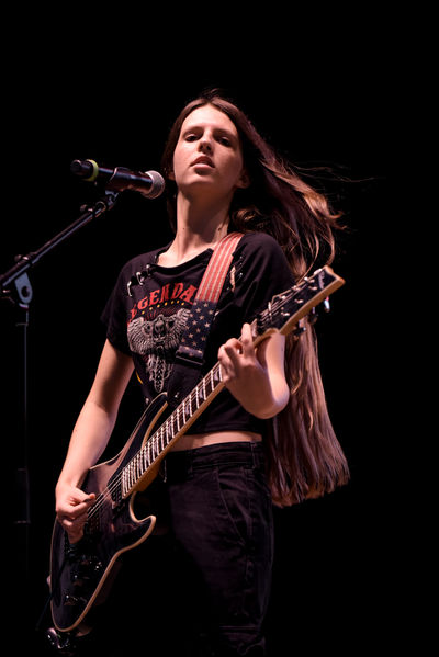 20 year old Bella is the guitarist & back-up vocalist. She began piano lessons at age 6 then guitar at 10. Her beautiful harmonies with her sisters help complete any song. Her energy & sense of humor bring added entertainment to the stage. Bella is also an amazing songwriter. She has completed 5 original songs & has started 9 more for Midnight3. On her off days, she loves to ride her Dad's Harley & her dirt bike whenever she gets the chance. In high school, she was an honors & dual enrollment student who also loved to play soccer & run track. In addition, Bella joined the worship team at church in August 2023. In May 2024, she was awarded scholarships to attend her top college choice & double major in Pop Rock Music & Elementary Education.